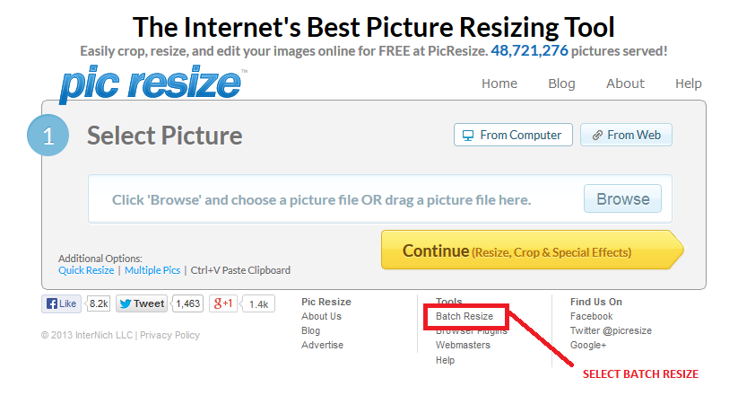 5. Once all of the files are uploaded select the size you wish the images to be and the file type followed by batch resize.